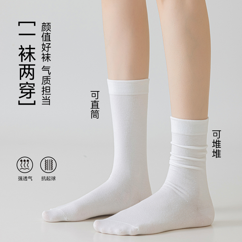 防臭堆堆袜松口无骨月子袜配勃肯鞋 黑色袜子纯棉女款 中筒袜春秋款