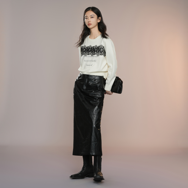 desire经典 orange 羊毛混色半身裙2024冬新直筒中长裙 高智感