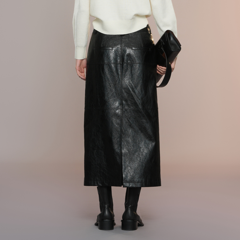 朗姿黑色鱼尾设计感半身裙长裙女优雅通勤高级半裙2025年秋季 新款