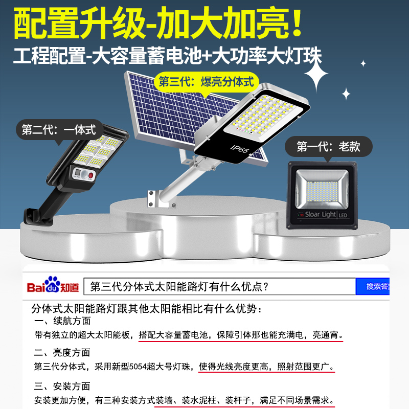 太阳能户外灯家用庭院灯2025新款 照明灯路灯 农村超亮大功率强光款