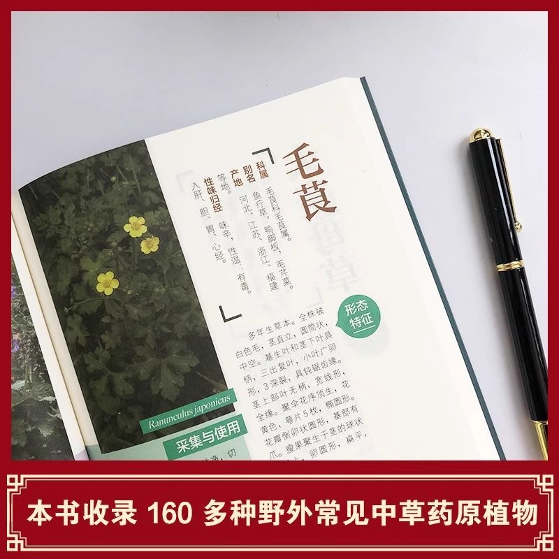 中草药彩色图鉴高清精编野外认采160种中草配比 野外认采草药彩色图鉴 实用好学易上手图解简单快速认药中医入门草药大全 正版