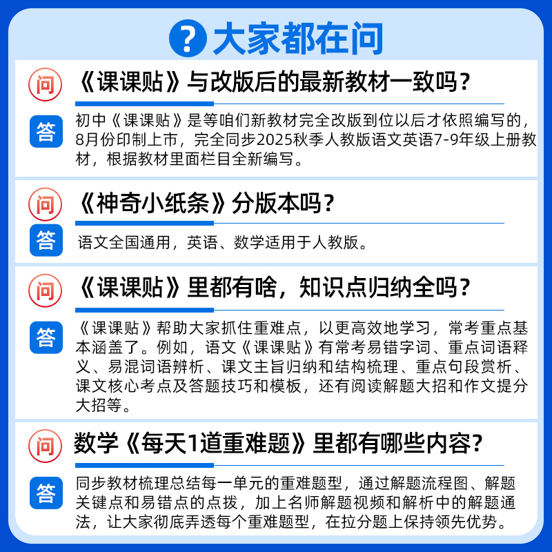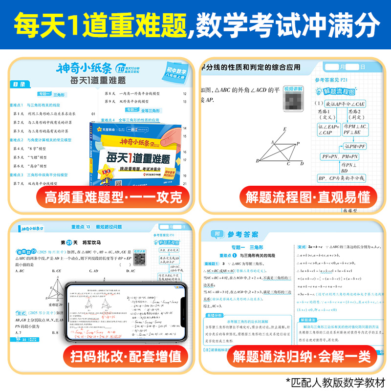 现货2025秋神奇小纸条初中语文英语新版 数学重难题一遍过七年级八年级九年级上同步课本教材课堂笔记初一二三天星教育 课课贴人教版