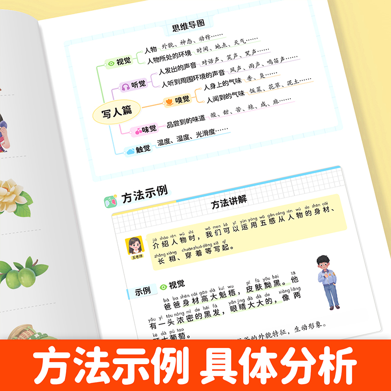视觉味觉听觉嗅觉触觉小学生作文书大全写作技巧优秀范文专项训练好词好句 五感法写作文二年级看图写话同步作文人教版 斗半匠