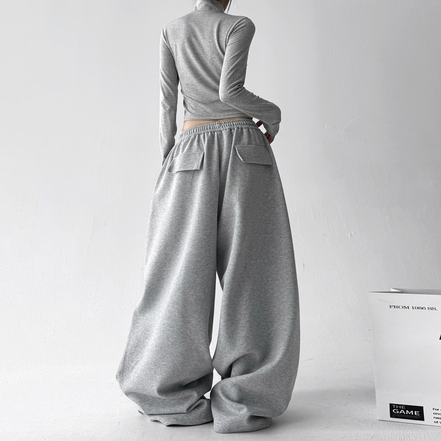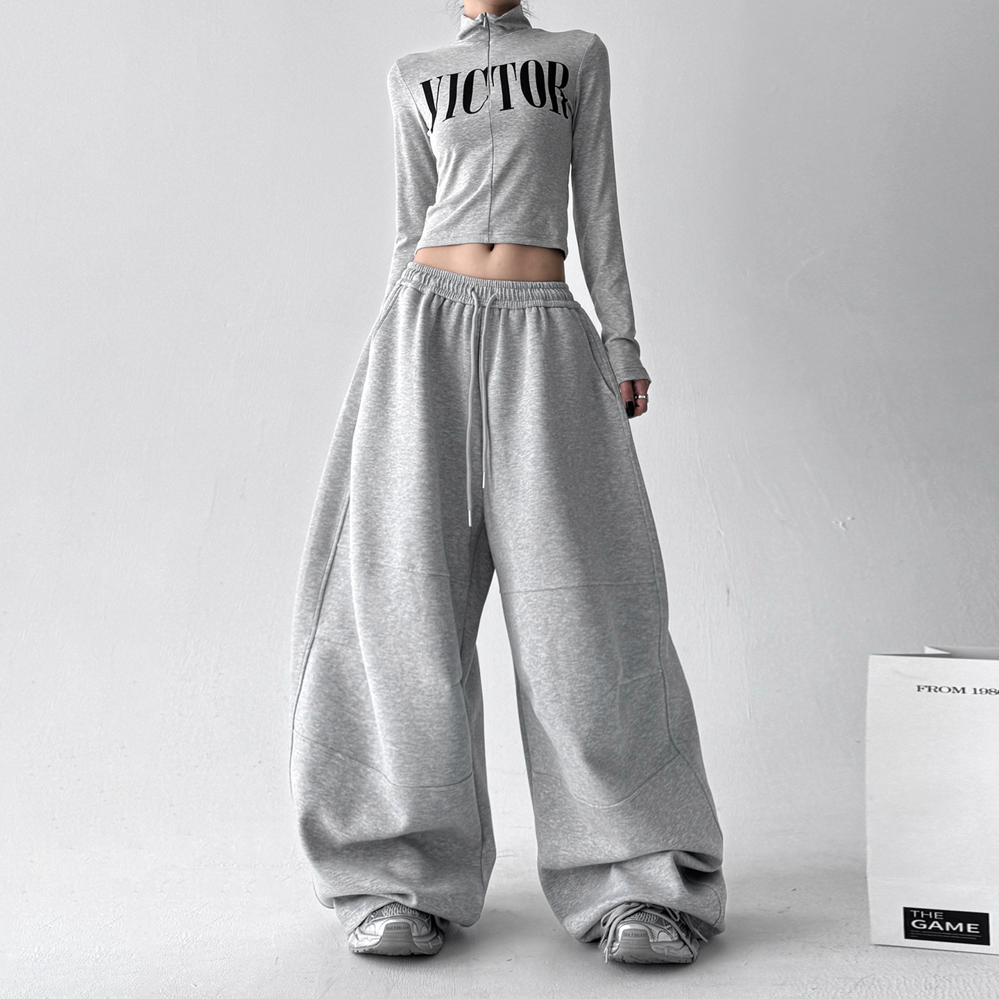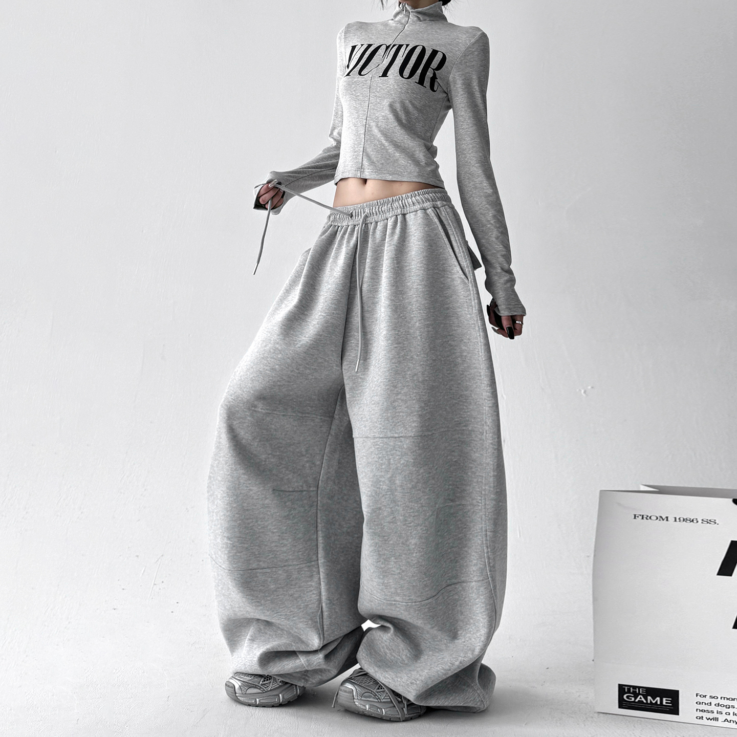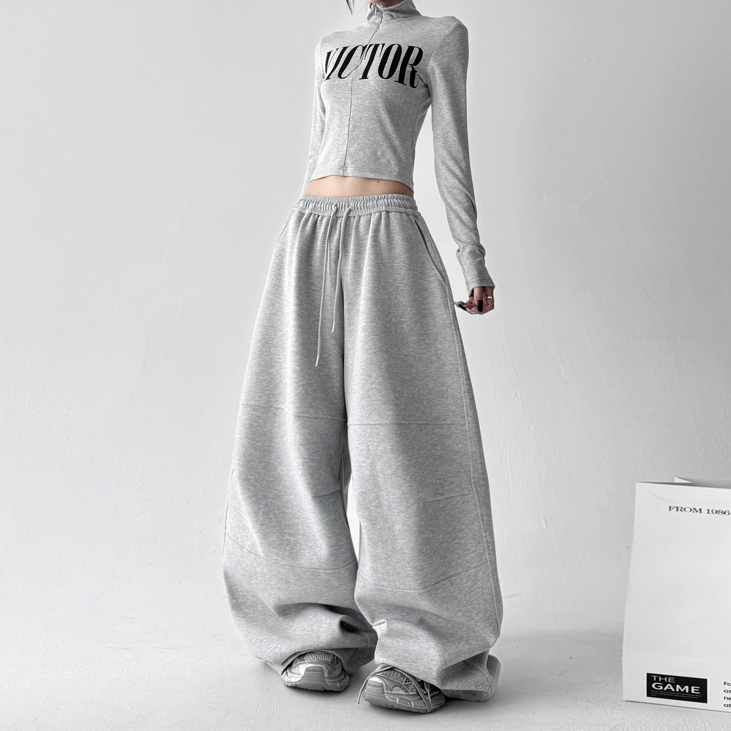百搭宽松休闲裤 超好看加绒阔腿裤 韩系慵懒感灰卫裤 新款 2025秋冬装