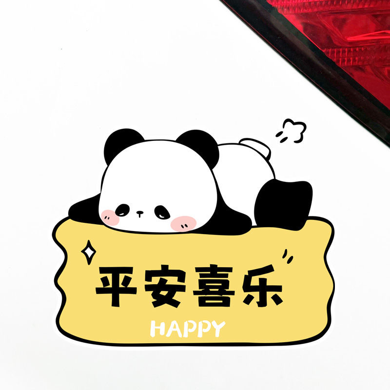 平安喜乐熊猫汽车装 创意划痕遮挡贴 饰后档玻璃贴纸车身电动车个性