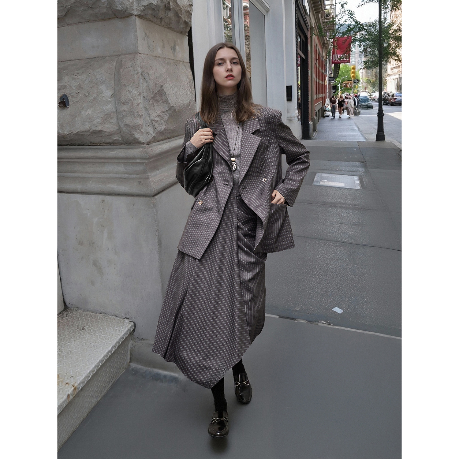 小野和子灰色西装 高腰显瘦小个子短裙女 a字半身裙女秋冬2025新款