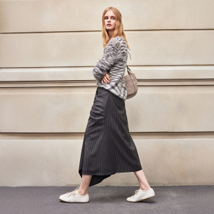 509092 气质流苏摆不规则半身裙子女装 三福格子长裙女2025新款 冬季