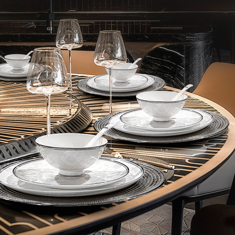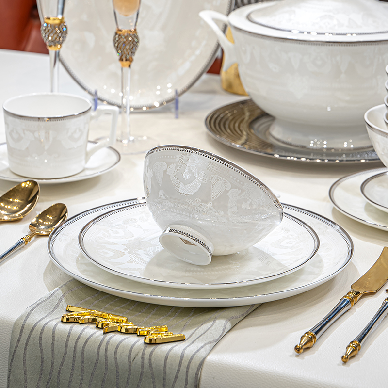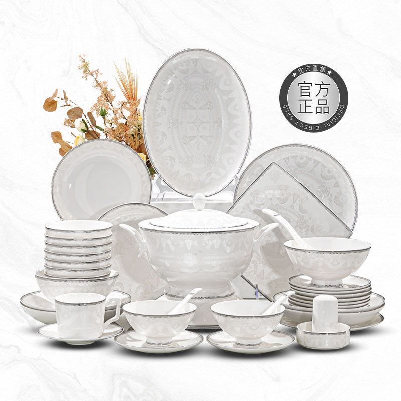 景德镇陶瓷碗盘碗碟套装 银边骨瓷餐具瓷器 家用乔迁 2025新款 巧瓷