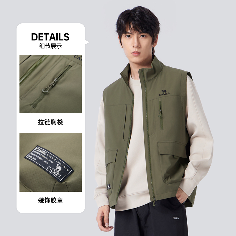 骆驼多口袋工装 外穿秋冬防风加绒背心外套男女青少年 马甲2025新款