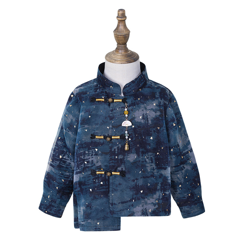 国风汉服长袖 2025新款 两件套儿童中秋主持人演出服 唐装 男童新中式