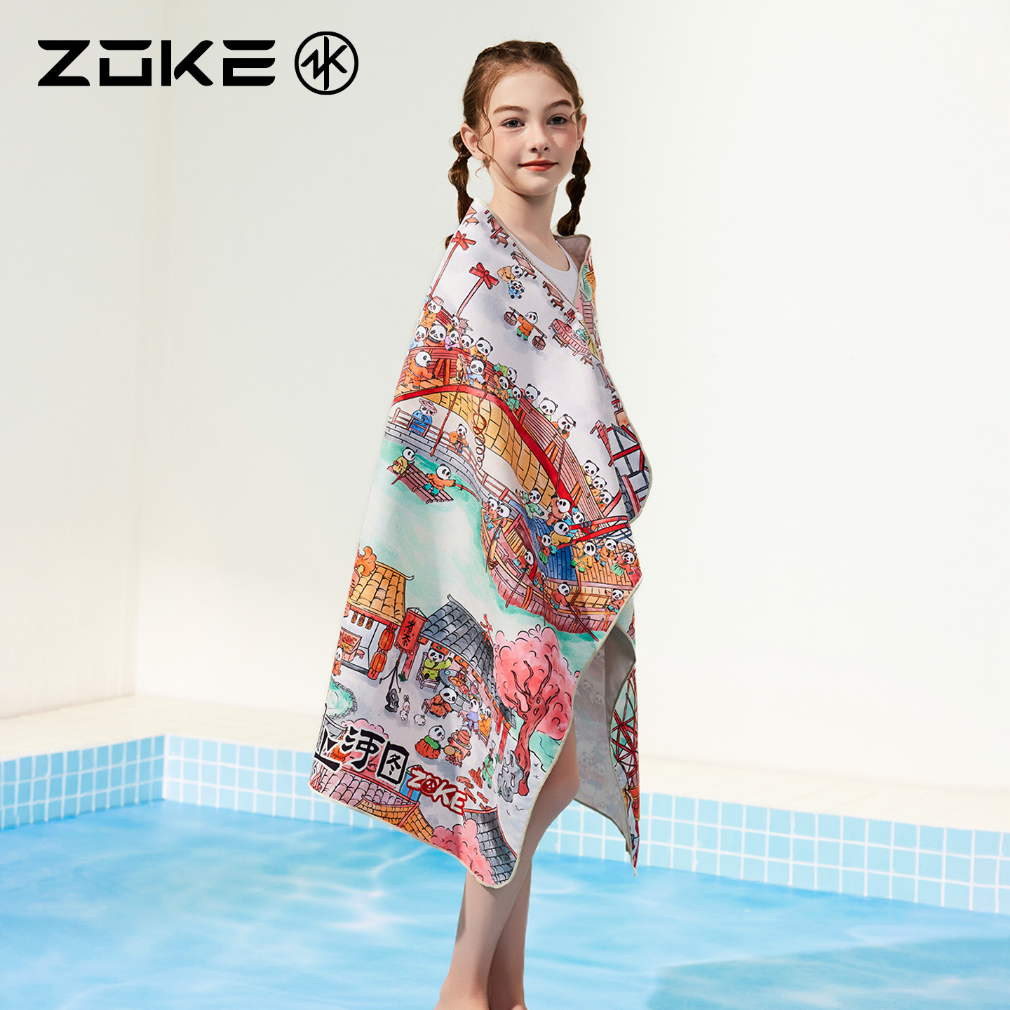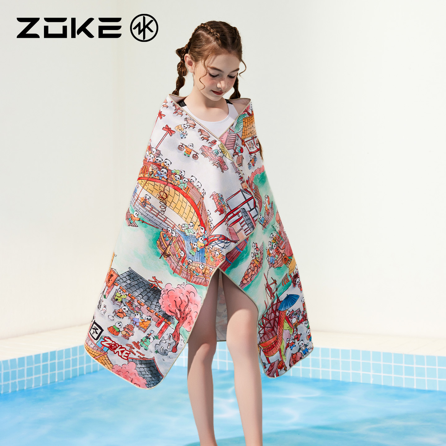洲克吸水毛巾儿童游泳训练专用保暖速干浴袍带暗扣度假海边沙滩巾