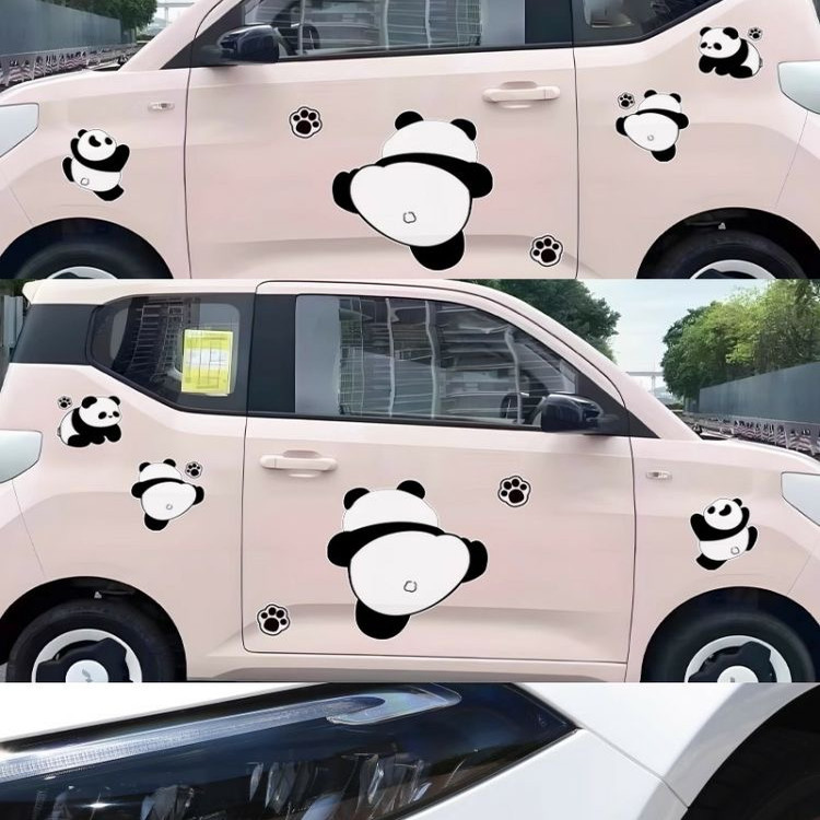 熊猫汽车贴纸划痕遮挡遮盖车头车尾搞笑车身装 饰车门大面积车贴画