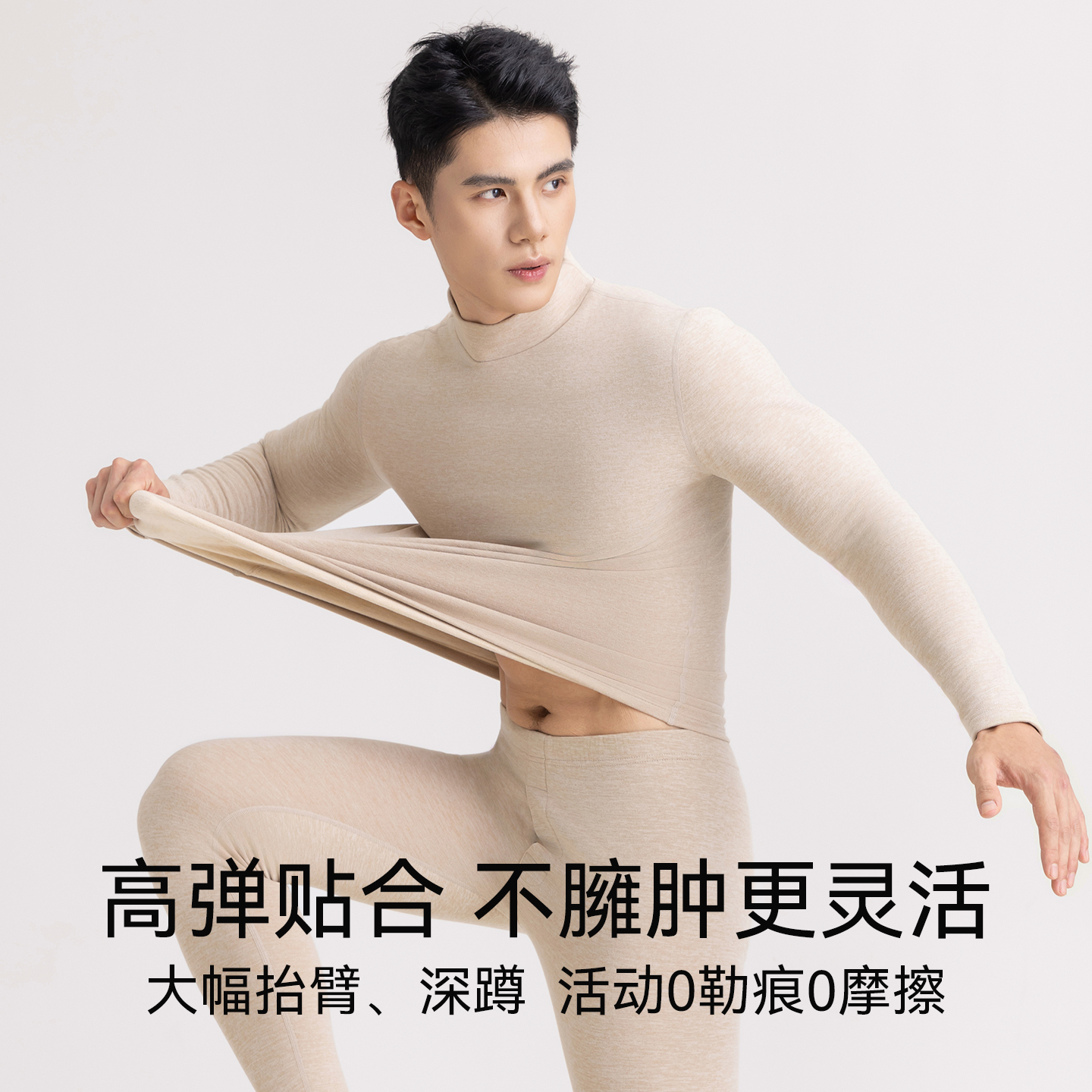 打底秋衣秋裤 保暖内衣套装 情侣秋冬德绒羊绒发热半高领加厚棉毛衫