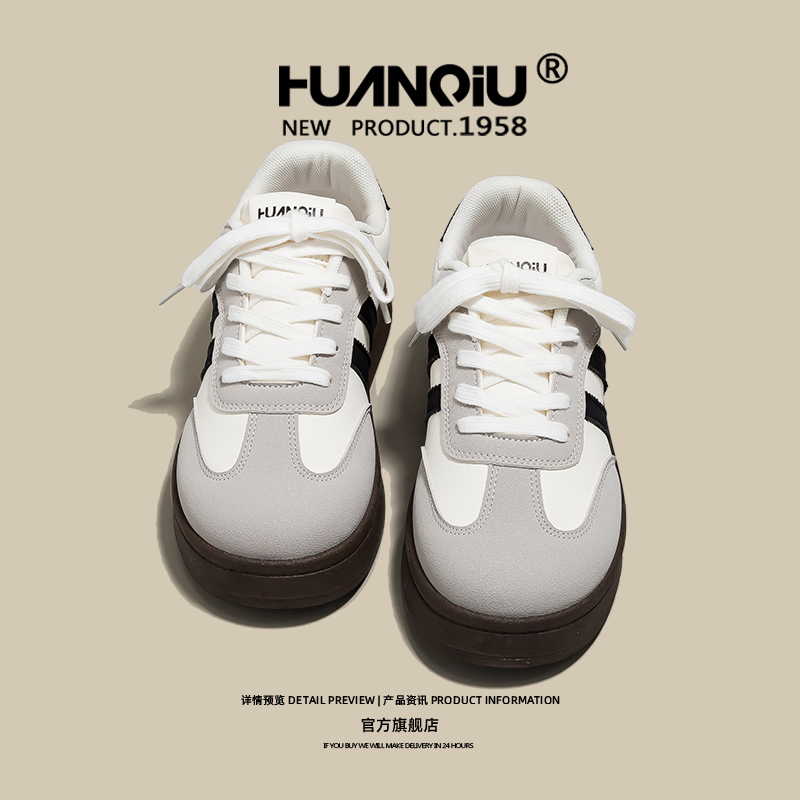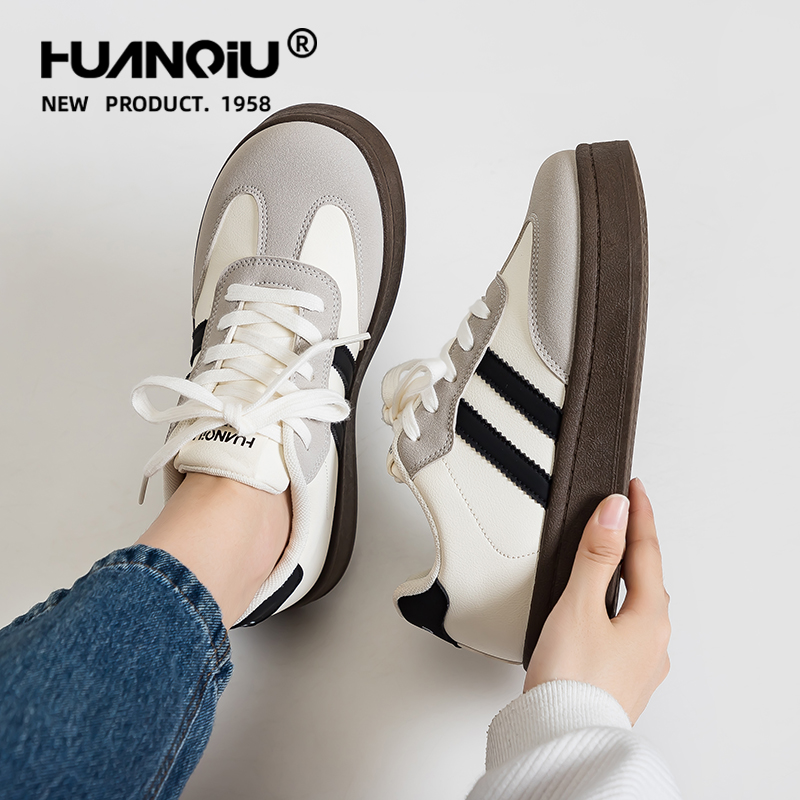 百搭轻便ins厚底不累脚板鞋 环球复古经典 小白鞋 女2025新款 德训鞋