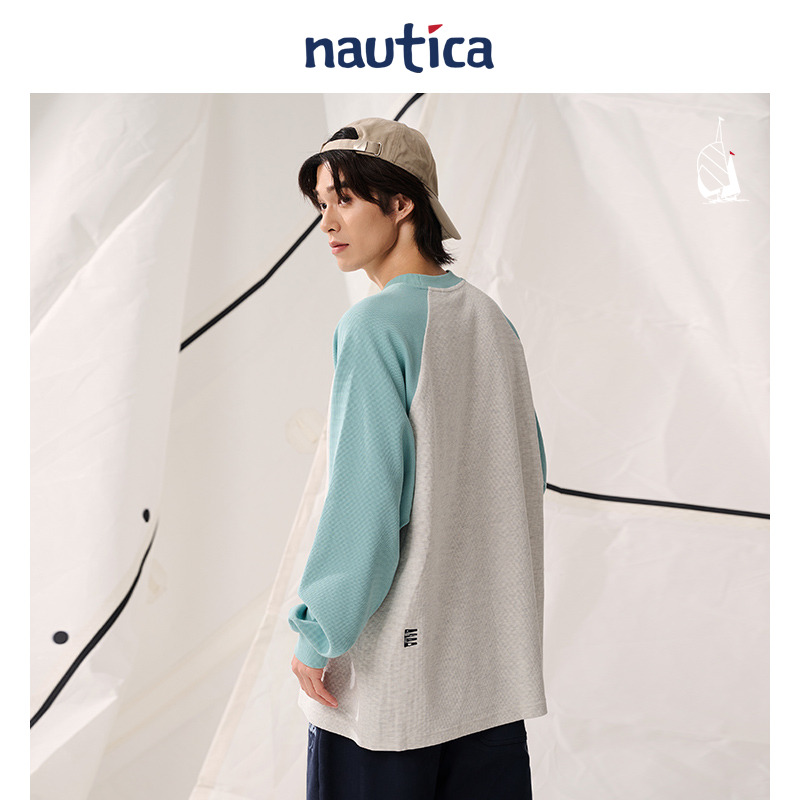 日系纯色休闲刺绣logo长袖 nautica白帆 T恤TW5354 官方正品