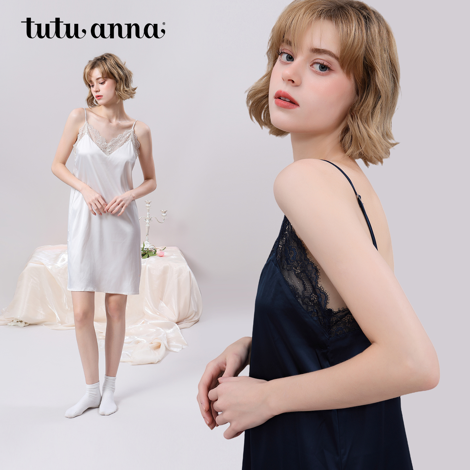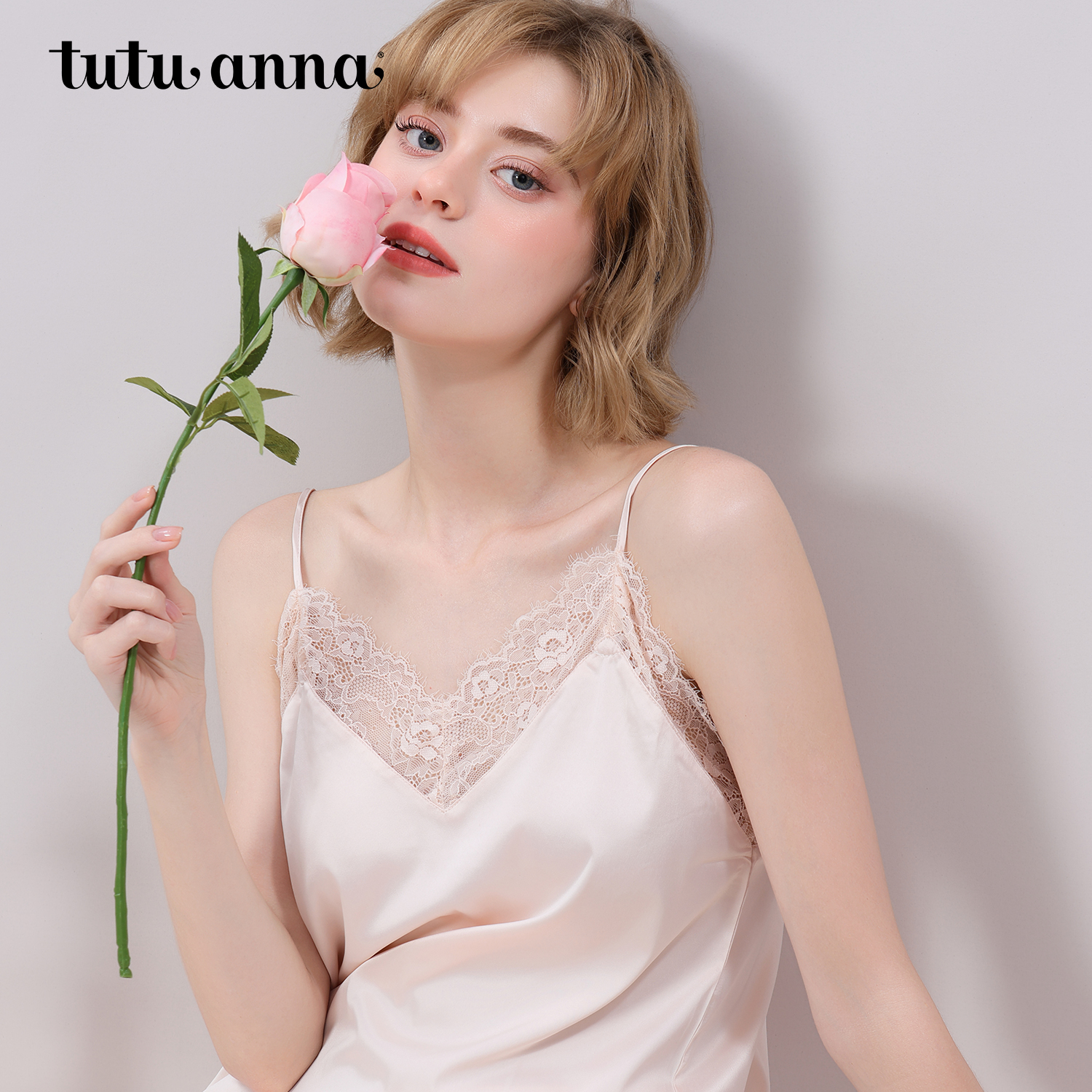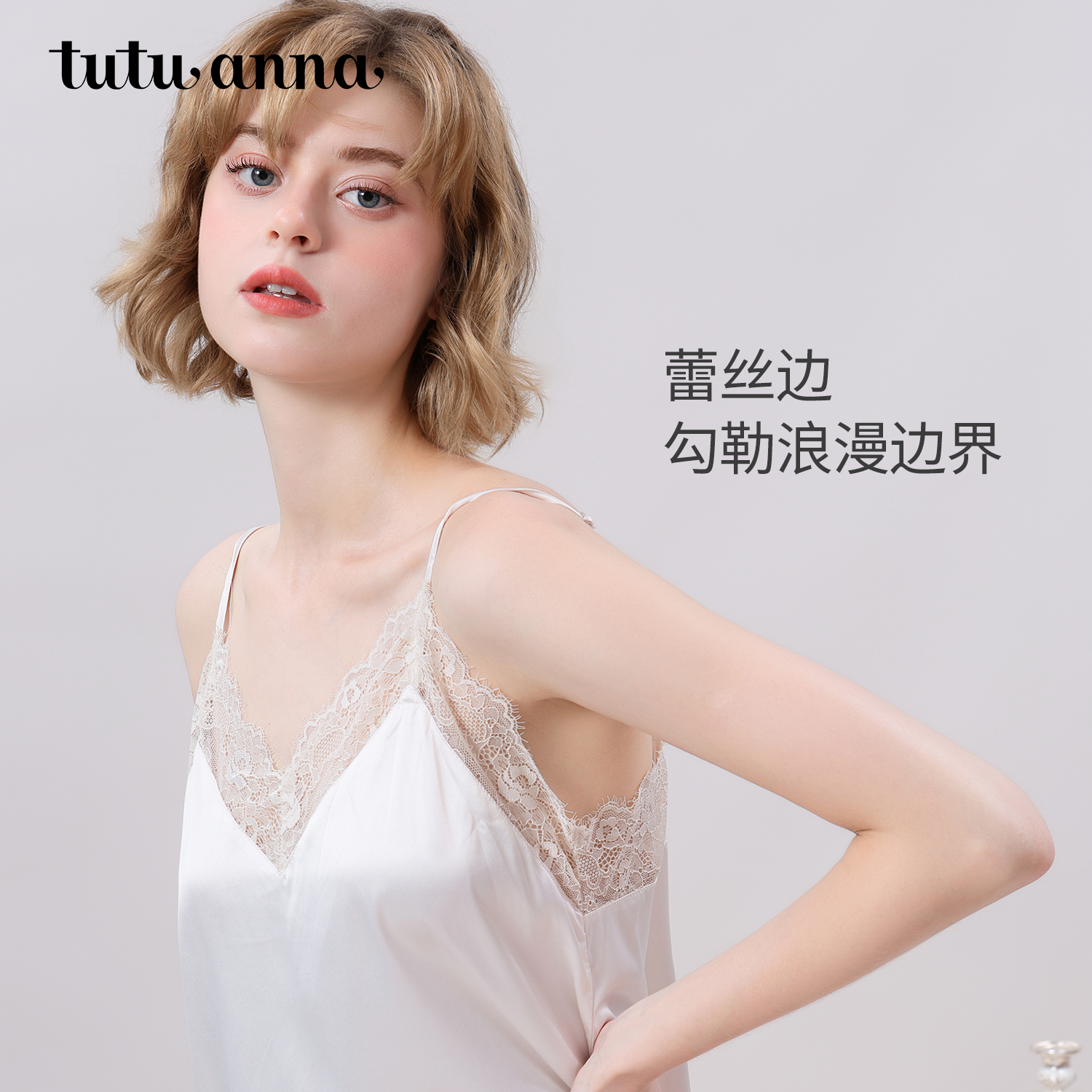 tutuanna女士蕾丝边吊带连衣裙 舒适透气吊带睡衣家居服女款