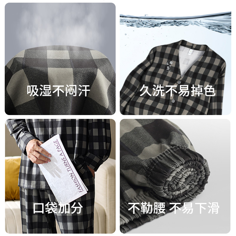 秋冬纯棉抗菌防螨2025新款 家居服套装 男士 长裤 长袖 有内睡衣男款