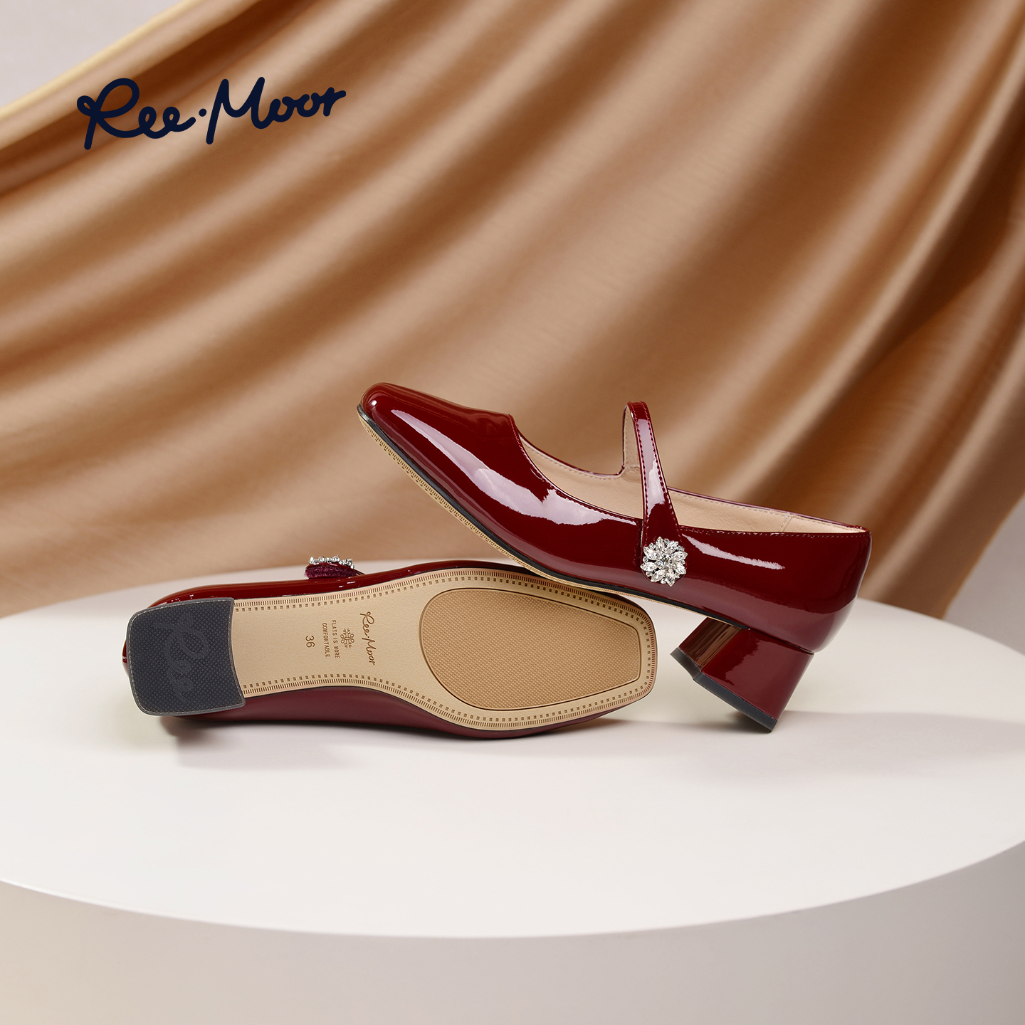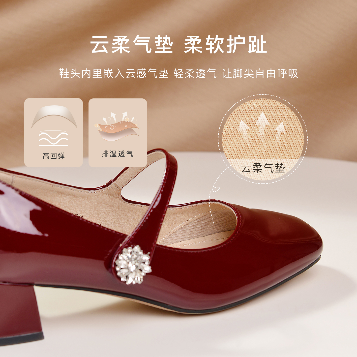 红色玛丽珍鞋 法式 百思图莫奈花园25秋新款 女单鞋 乔欣明星同款