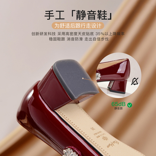 真皮浅口单鞋 新款 子E1T1DCQ5预 女2025秋季 百丽复古粗高跟玛丽珍鞋