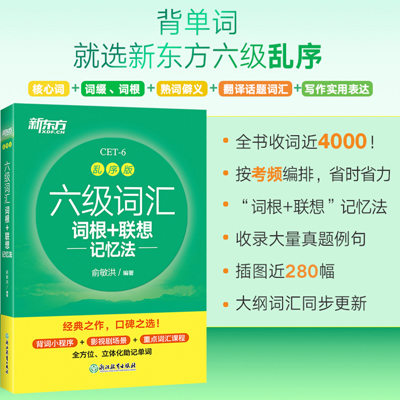真题闪过单词书大学英语四级考试英语真题试卷视频俞敏洪绿宝书 联想记忆法乱序版 备考2025年12月 新东方英语四六级ket词汇词根