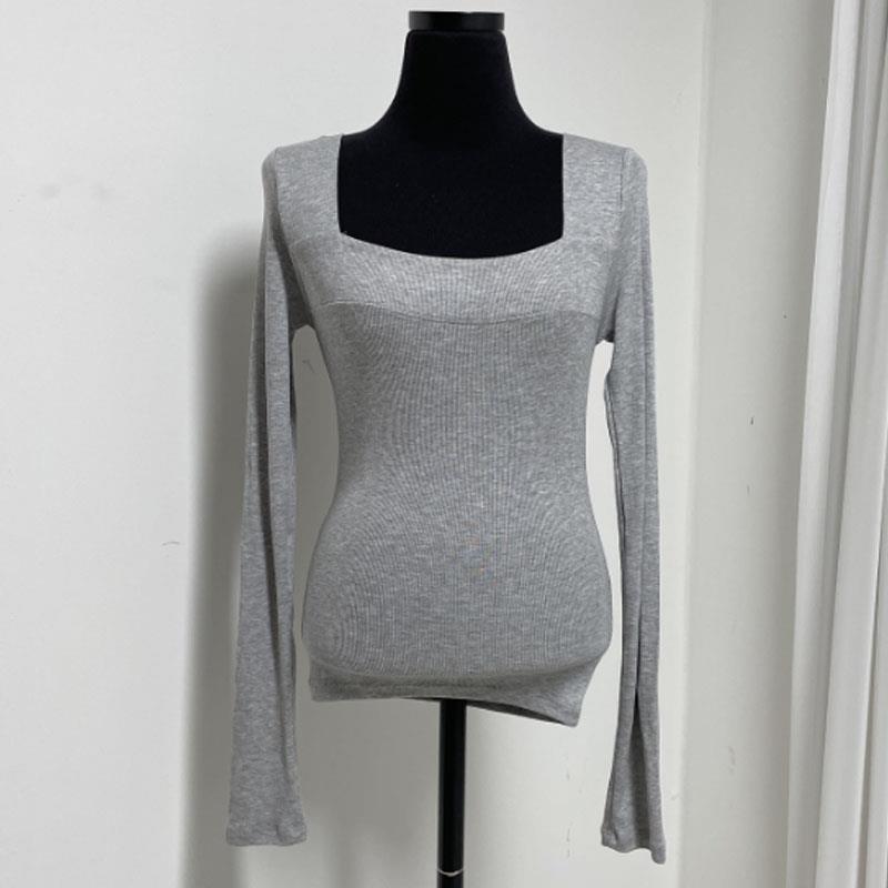 OnoevUF219气质女人味 T恤ye 性感方领显胸弹力紧身长袖