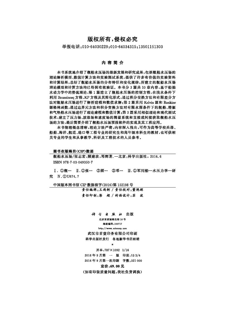 张志宏 舰船水压场 顾建农 邓辉 社 正版 科学出版 现货