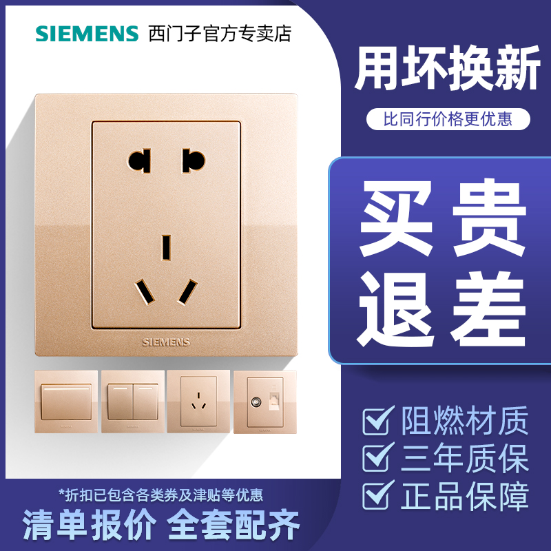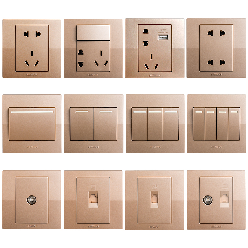 西门子开关插座香槟金色悦动系列套餐五孔插座一开86型家用面板