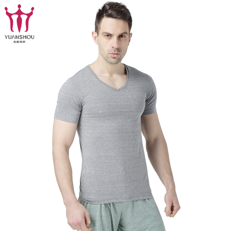 汗衫 家居衫 T恤男士 元 衫 休闲打底衫 半袖 首男内衣春夏雪花棉V领半袖