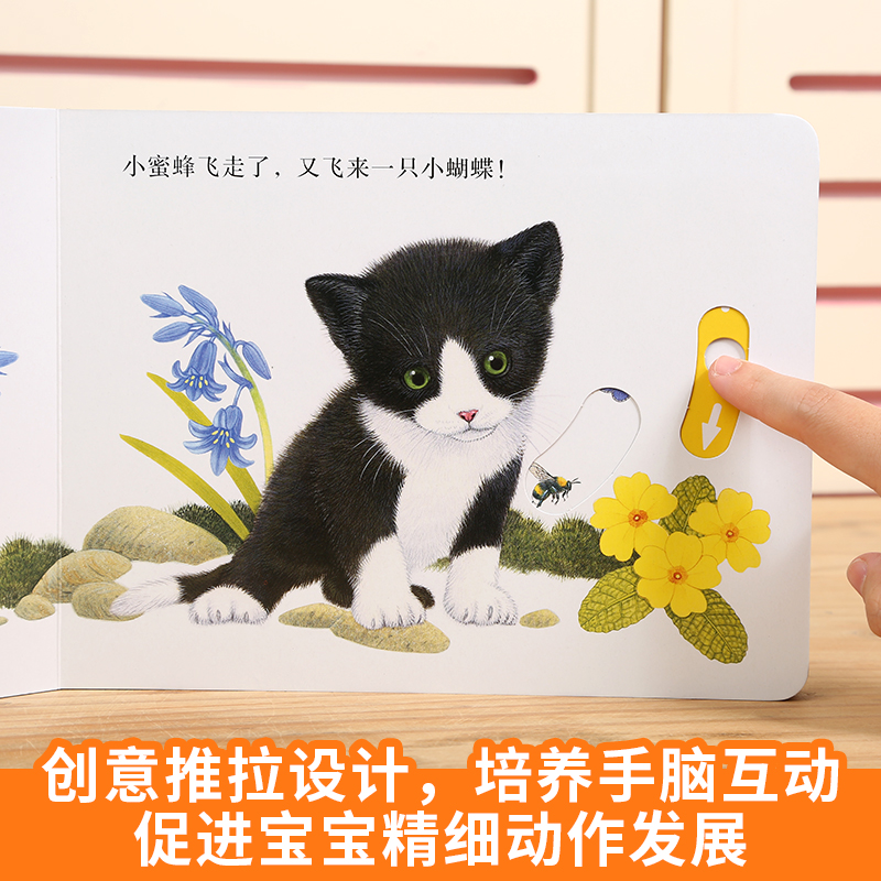 乐乐趣动物朋友手指推拉书好奇 3岁儿童绘本宝宝纸板启蒙亲子互动翻翻绘本1岁2洞洞机关触摸书 小猫幼儿早教书籍婴儿0