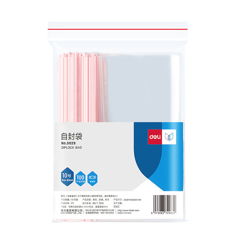得力加厚自封袋透明食品袋大中小号一次性塑封密封袋分装 封口袋子