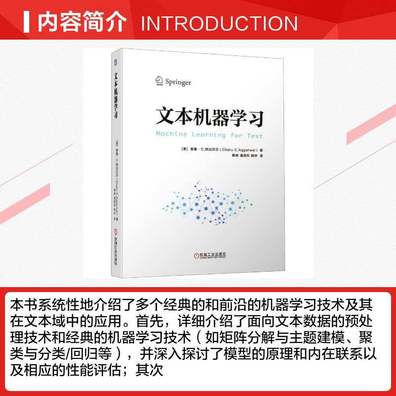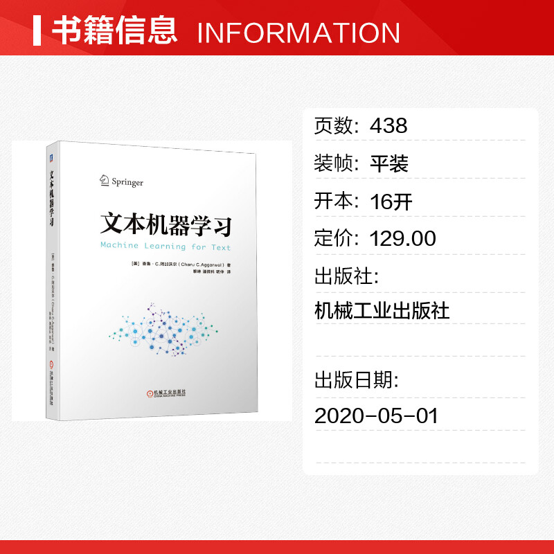 黎琳 计算机控制仿真与人工智能专业科技 查鲁·C.阿加沃尔 译 明仲 潘微科 著 C.Aggarwal Charu 美 文本机器学习