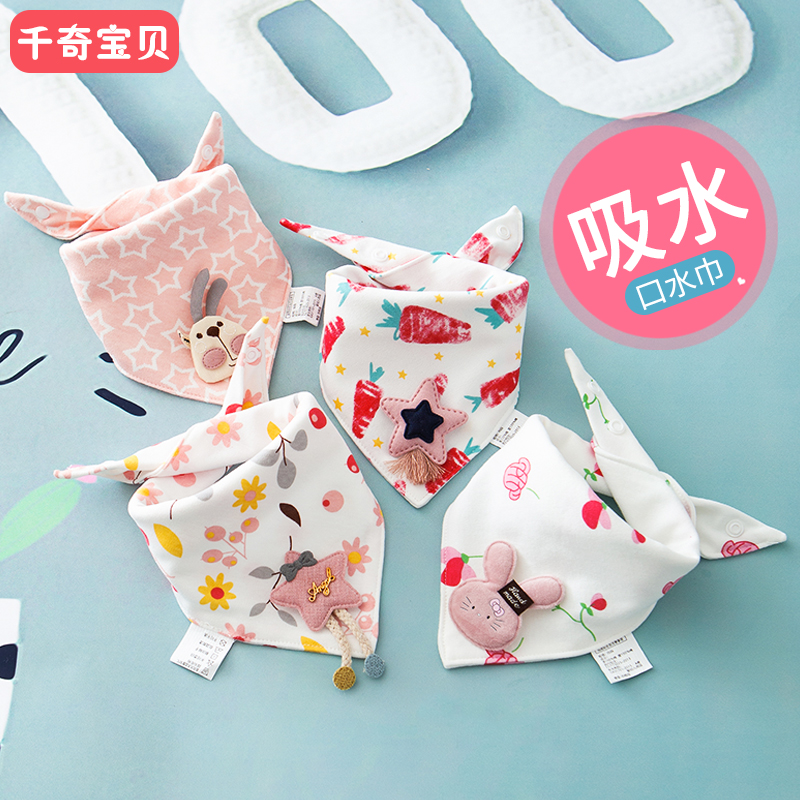 宝宝三角巾婴儿口水巾纯棉围嘴新生儿围兜超柔双层防吐奶秋冬季 款