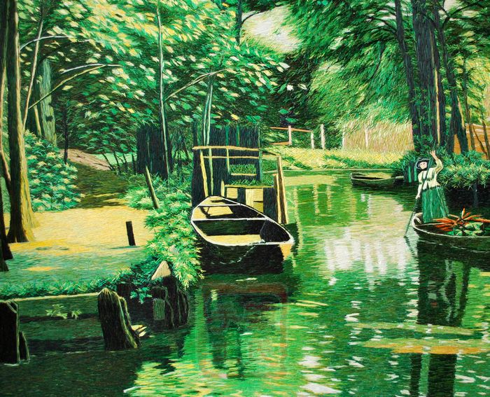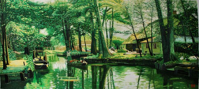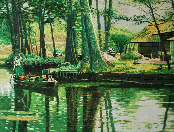 110 苏绣成品挂画 205特大刺绣西方油画系列俄罗斯风景赶集