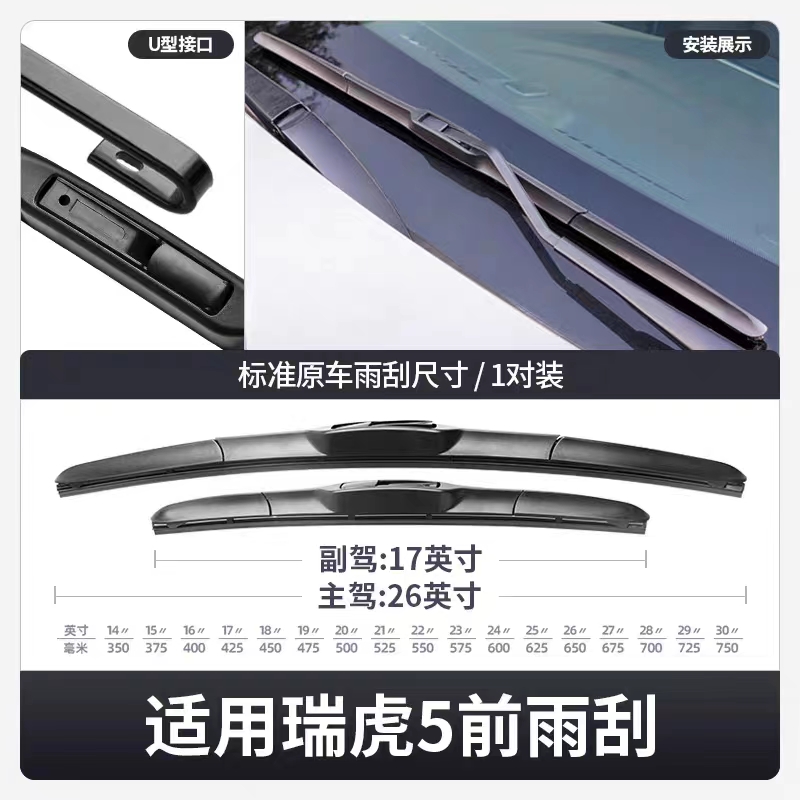 适配汽车原厂前雨刷片有骨静音通用型刮胶条原装 带铁骨U型雨刮器
