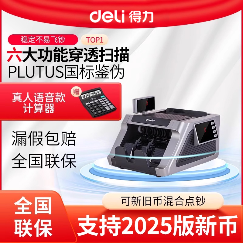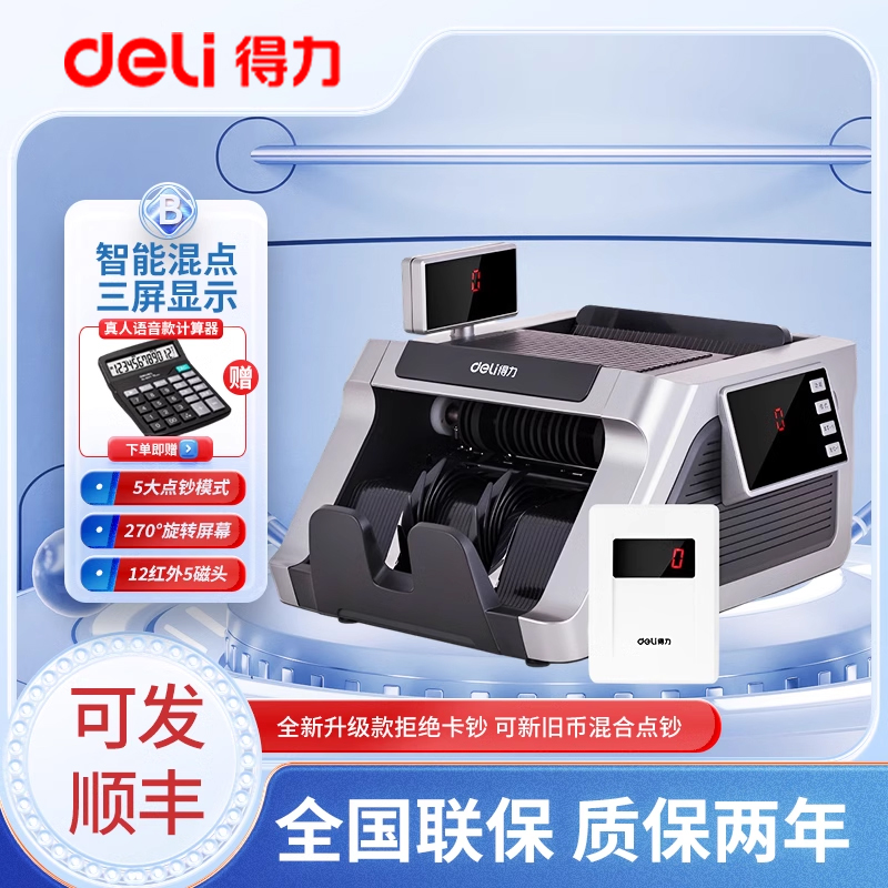 语音提示播报 超市家用新三屏点钞机智能办公数钞机通用新款 得力B类2025新版 人民币验钞机商用收银小型便携式
