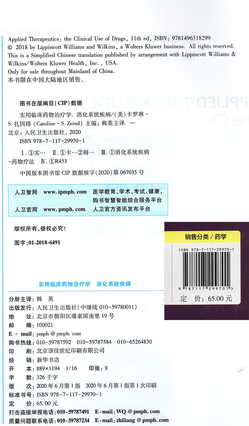 社9787117299701 十一韩英人民卫生出版 正版 现货实用临床药物治疗学消化系统疾病第11版