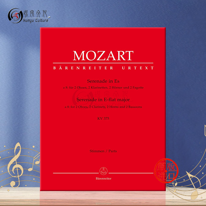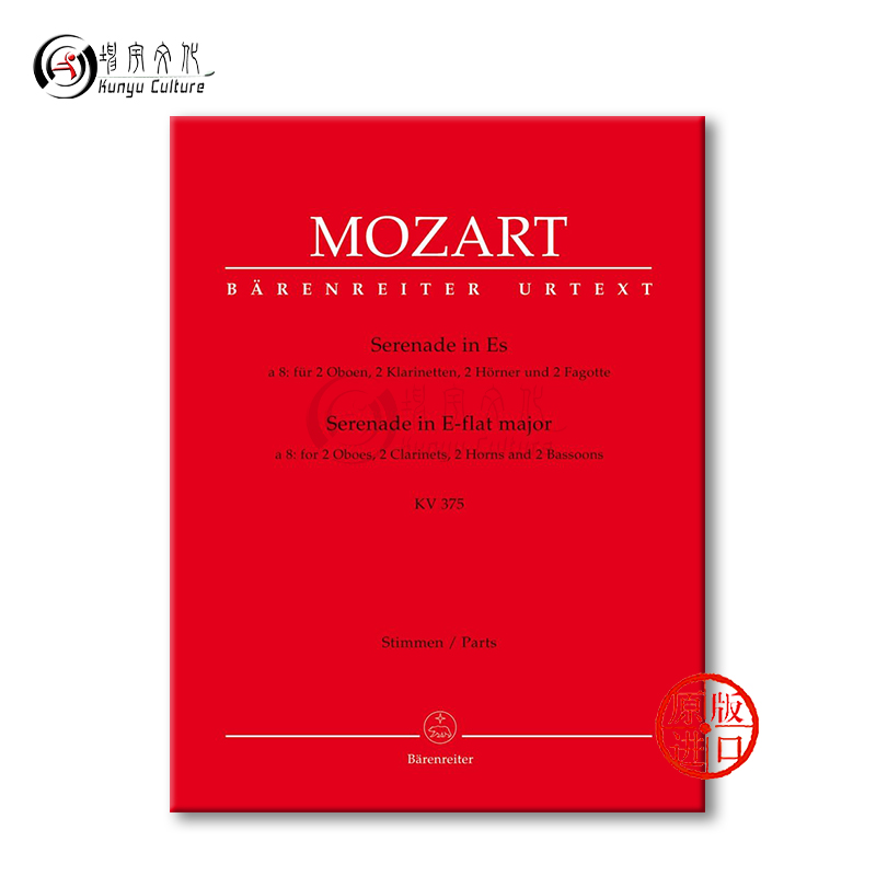 双簧管单簧管圆号巴松管各两支 乐谱书 小夜曲 降E大调 flat BA5333 莫扎特 分谱 K375 Serenade Mozart 德国骑熊士原版 major