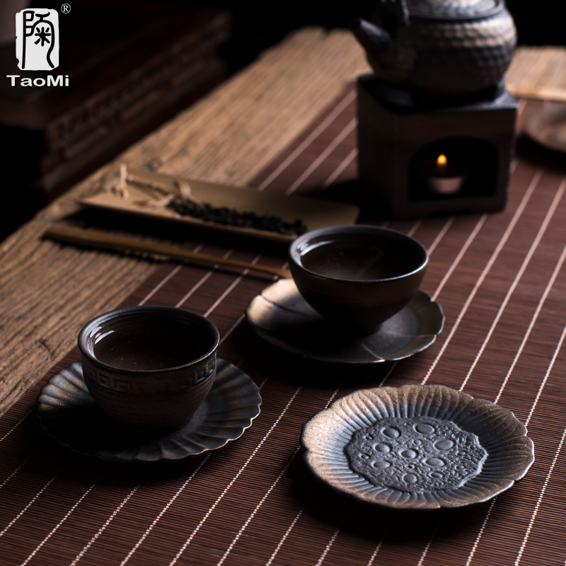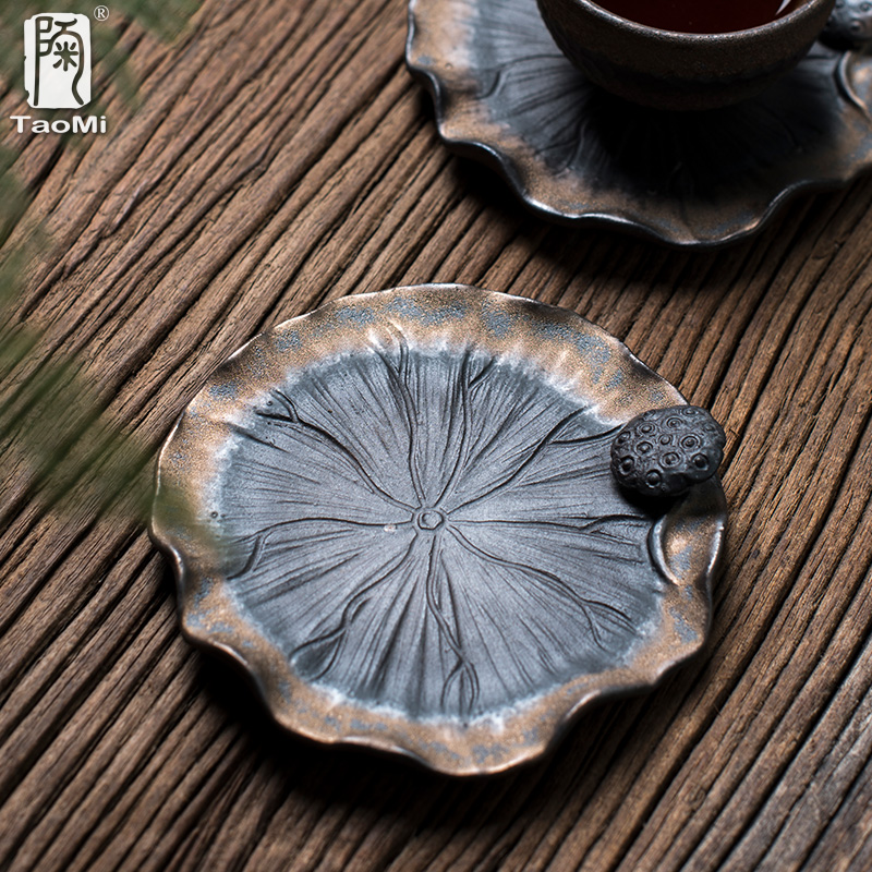 陶迷纯手工粗陶杯垫隔热手捏茶垫功夫茶具茶道配件创意鎏金釉壶垫