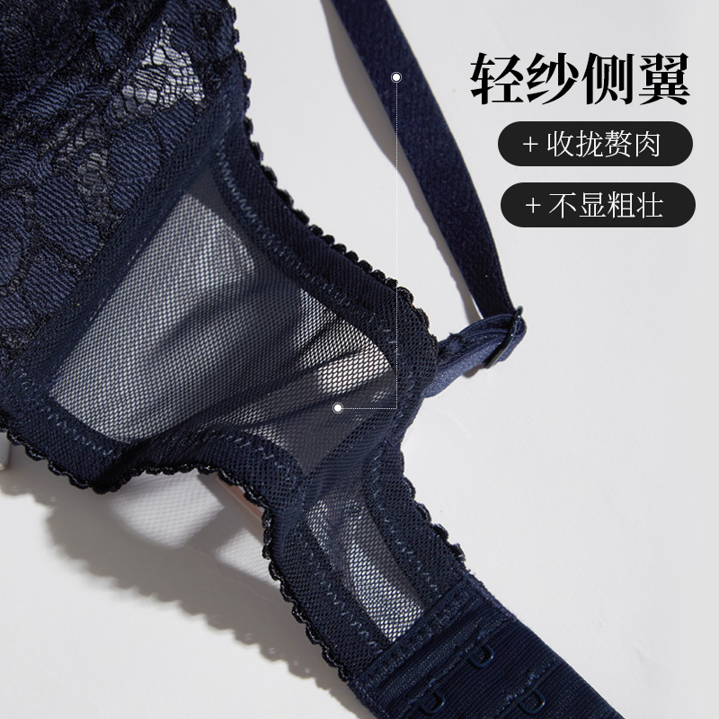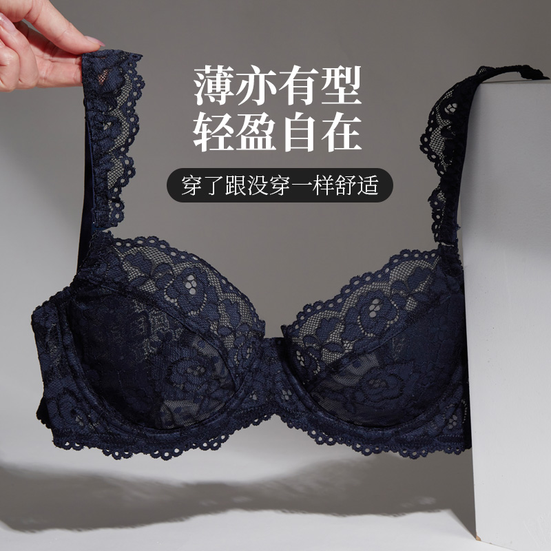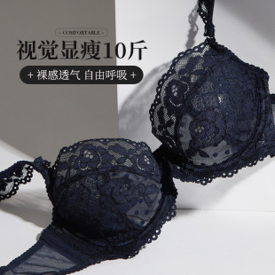 性感纯欲 蕾丝文胸罩套装 好奇蜜斯大胸显小胸防下垂内衣女薄款 法式