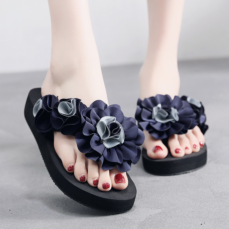 外穿防滑厚底凉拖女海边度假花朵中跟人字拖 女夏时尚 2025新款 拖鞋
