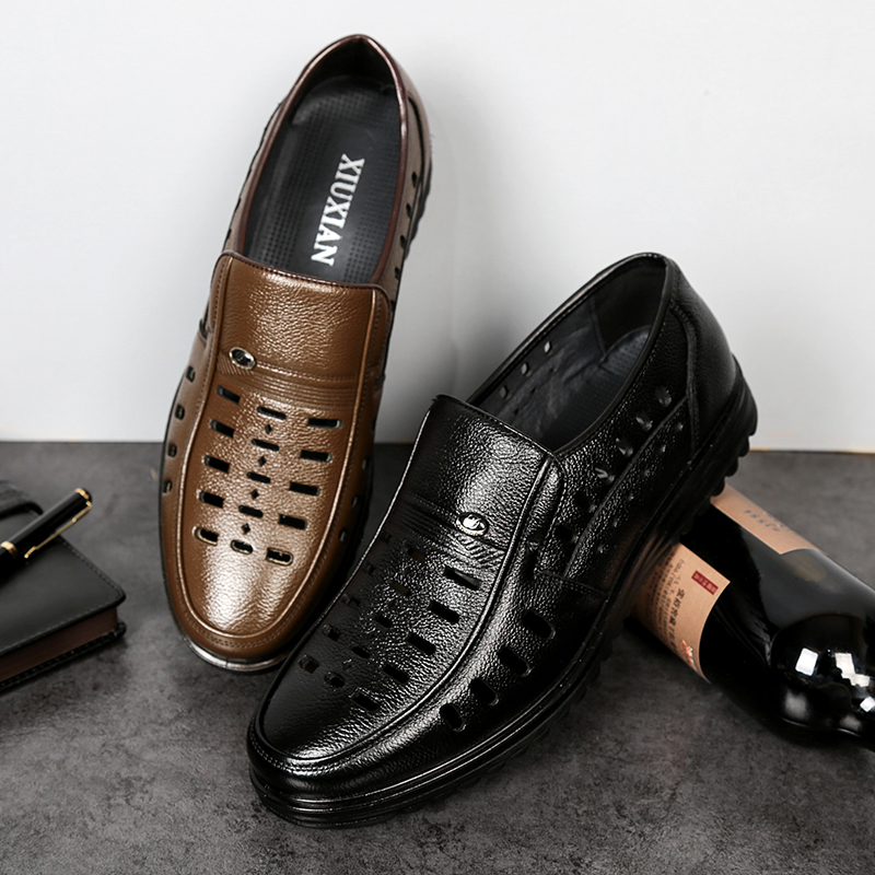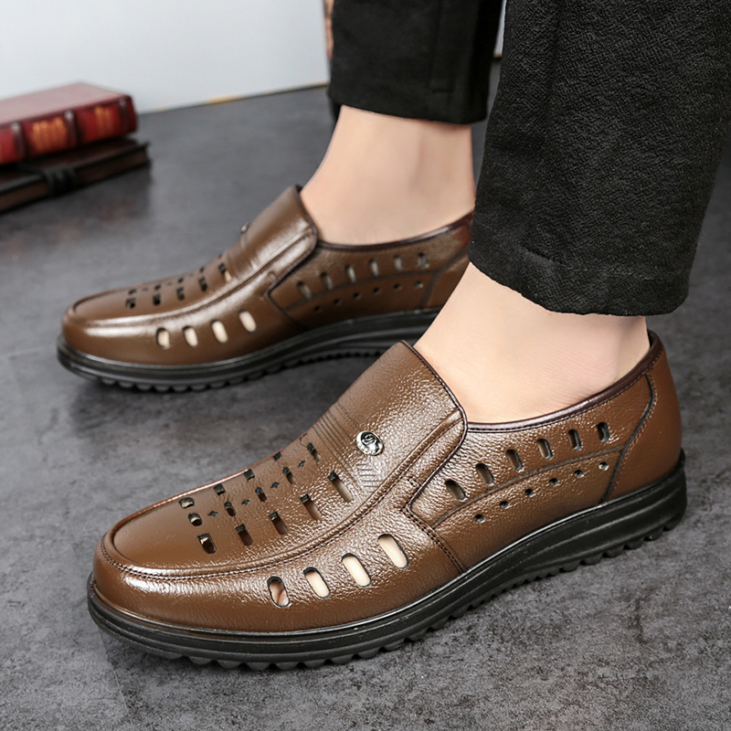 男真皮秋季 透气厚底商务休闲皮鞋 中老年爸爸鞋 男鞋 大码 老人头皮鞋