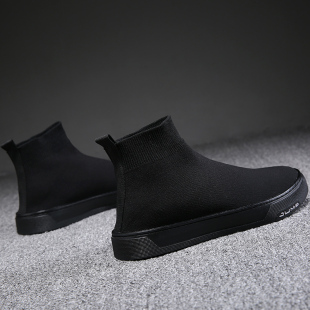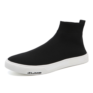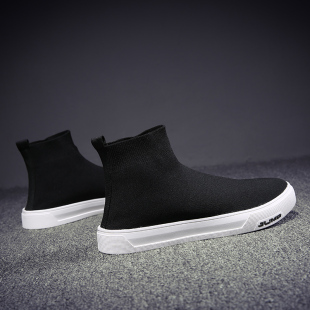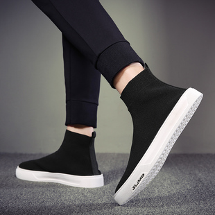 新款 秋季 韩版 潮流透气运动休闲鞋 男 弹力袜子鞋 套脚中帮板鞋 男潮鞋