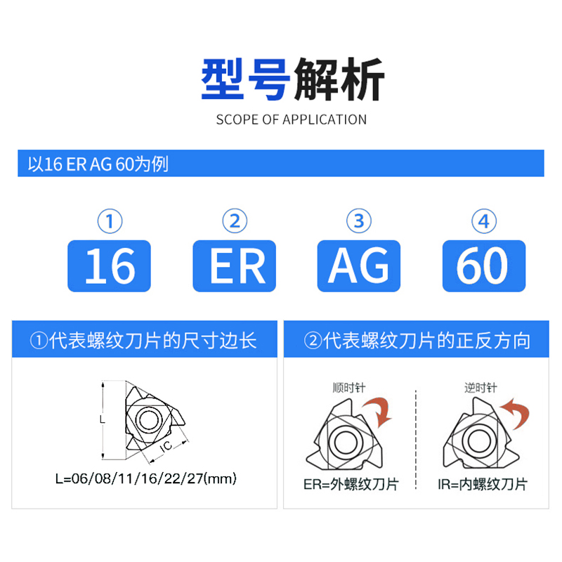 2.0 14W 11W ISO 3.0 1.5 AG55 AG60 16ER 螺纹刀片内外不锈钢
