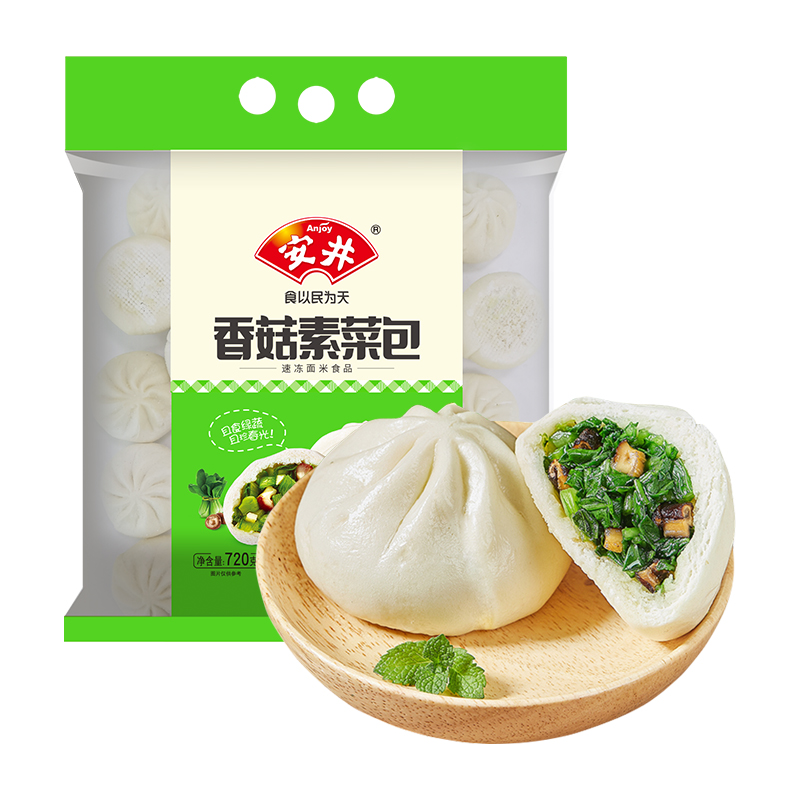 安井香菇素菜包720g家装 速冻青菜包子营养早餐菜馒头加热即食点心