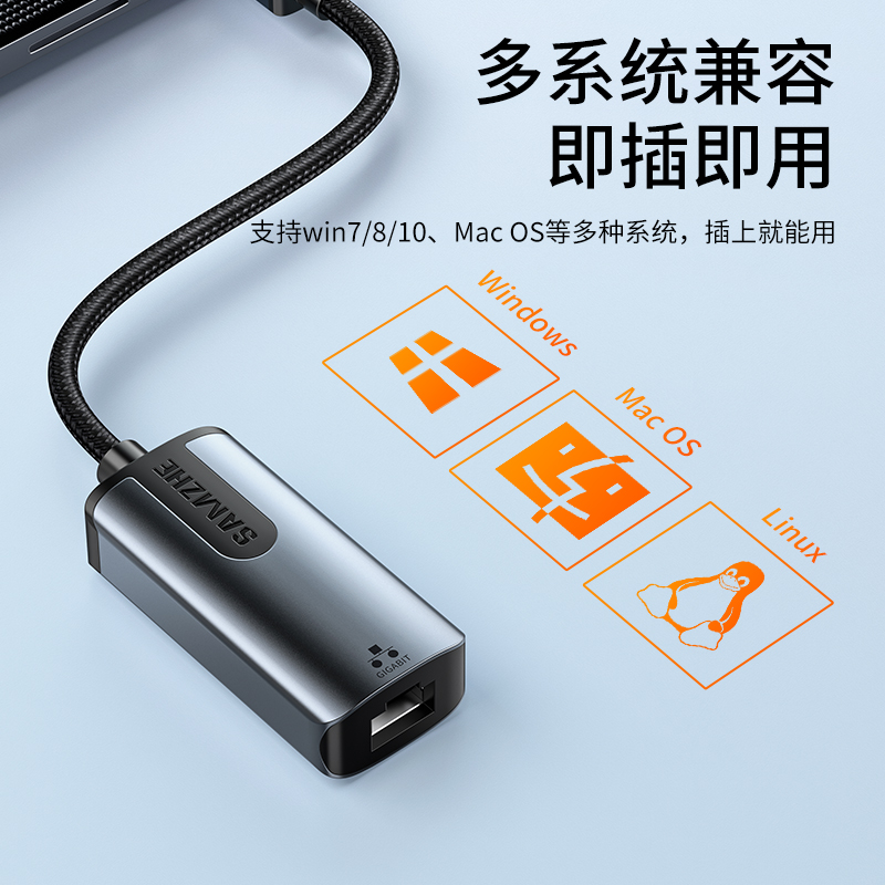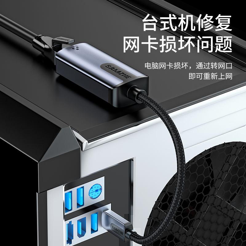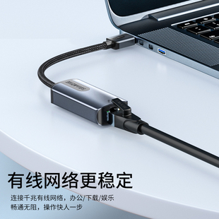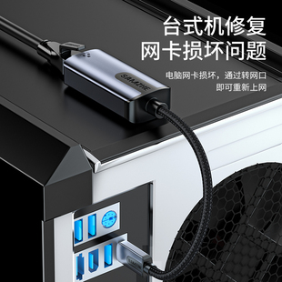 山泽网线转接口usb分线器转以太网口转换器扩展坞连接千兆有线网卡拓展网络宽带typec接头适用电脑笔记本手机