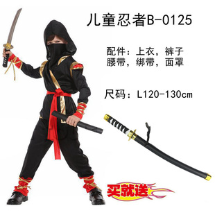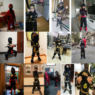 儿童万圣节服装 男童演出舞会派对cos蒙面忍者衣服刺客夜行衣