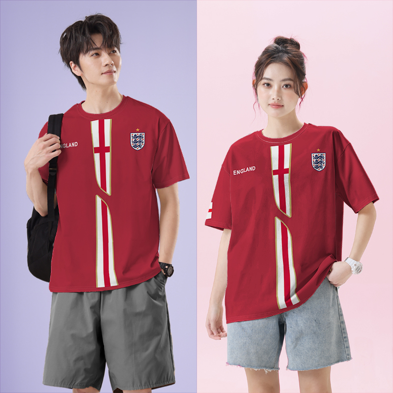 无界 夏设 英格兰England纯棉短袖 T恤男女足球国家队运动训练服装