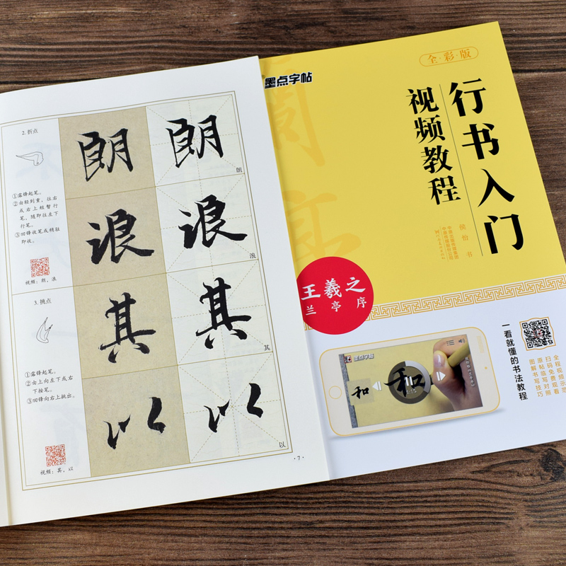 看视频逐字学习书法毛笔临摹笔画偏旁部首字帖 王羲之行书入门视频教程 初学者扫码 全彩版 墨点字帖 兰亭序