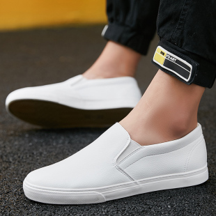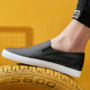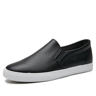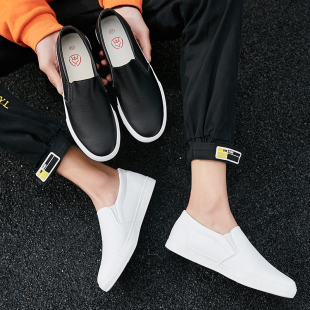 子男小白鞋 潮黑色鞋 男一脚蹬懒人鞋 平板鞋 人本皮面板鞋 男鞋 男韩版