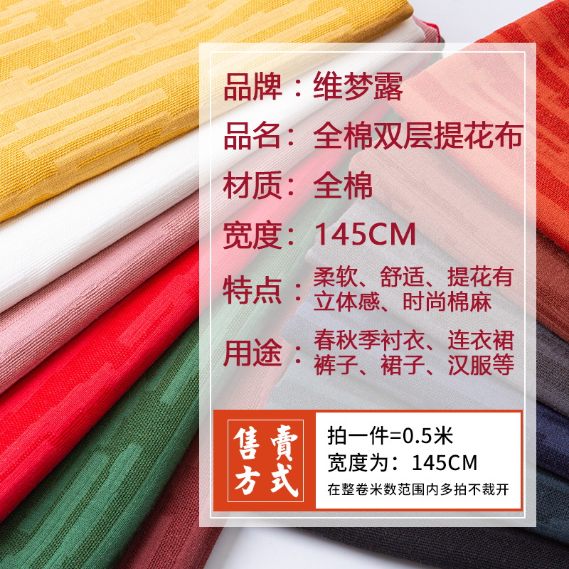 纯棉布料100全棉麻提花双层面料新中式 做连衣裙国风汉服清仓处理